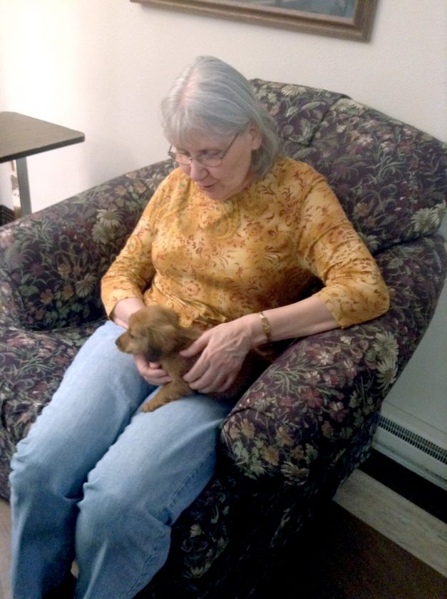 Crestview Nursing and Rehab enjoyed snuggles and licks from three puppies, courtesy of Flint Schutt of Williams. The residents got to hold and play with a Golden Retriever, 8 weeks old, Miniature Dachshund, 9 weeks old and a Irish Wolfhound/Golden Retriever mix, 2 weeks old. “The event was such a success, future visits are already being requested by the residents, ” said Sunshine Garth, activity director for Crestview.