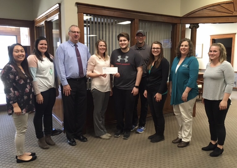 First State Bank recently donated $2,000 to Webster City High School Band Boosters uniform drive. Above, First State Bank representatives present a check to band member Blake Seiser and band booster member Jamie Seiser.