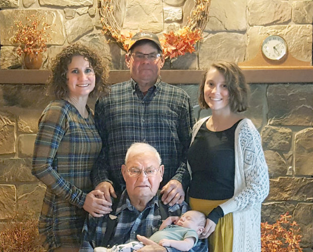 Five generations of a Webster City family gathered recently. Pictured are Kenneth Youngdale, Randy Youngdale, Regan (Youngdale) Dawson, Kayla (Dawson) Glenn and baby Cyrus Glenn