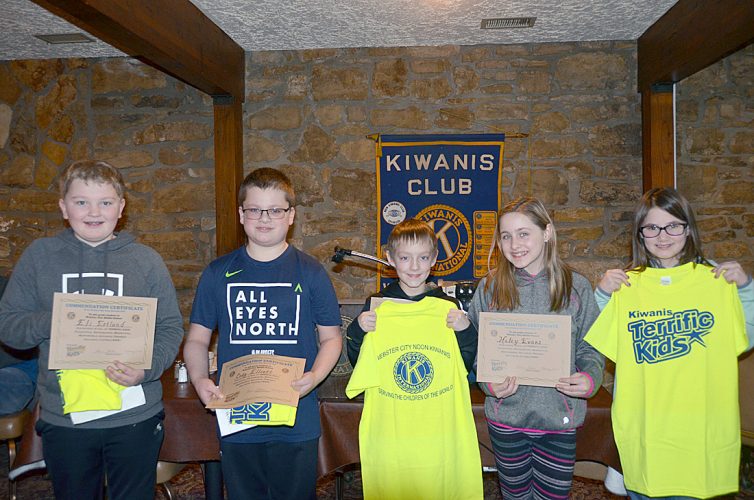 These Webster City Middle School 5th graders — Eli Estlund, Cody Elliot, Jake Ewing, Haley Evans and Addasyn Carlsen — were the guests of the Noon Kiwanis Feb. 5. They introduced themselves and told about their families and pets and their favorite subject to study in school. They learned ...