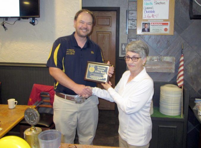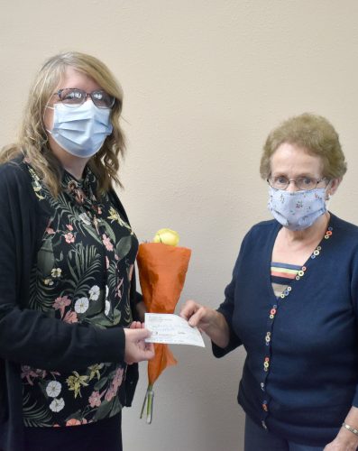 Shelby Kroona, left, director of Hamilton County Public Health, was named as the Woman of the Year for 2020-2021 for Laureate Gamma Omicron Chapter of Beta Sigma Phi International Sorority. The presentation was made by Chapter President Sheryl Asmus Monday afternoon. Asmus said the ...
