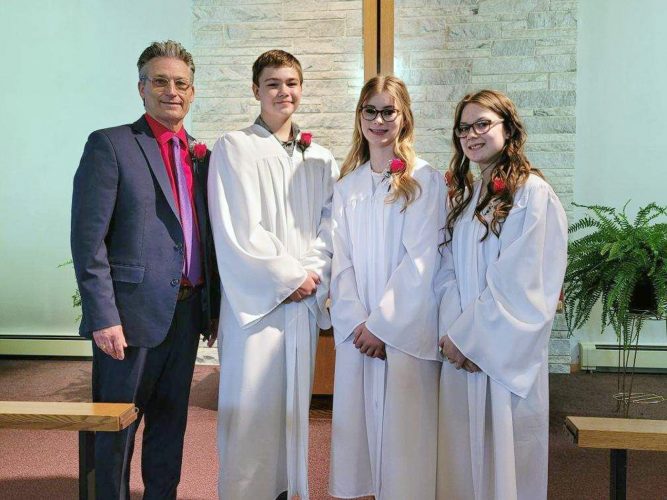 Confirmation was held on Sunday, May 2 at St. Paul Lutheran Church in Williams. Pictured are Pastor Jeff Tjelta, brock Corn, Alicia Wahlert and Tatum Henrichs.
