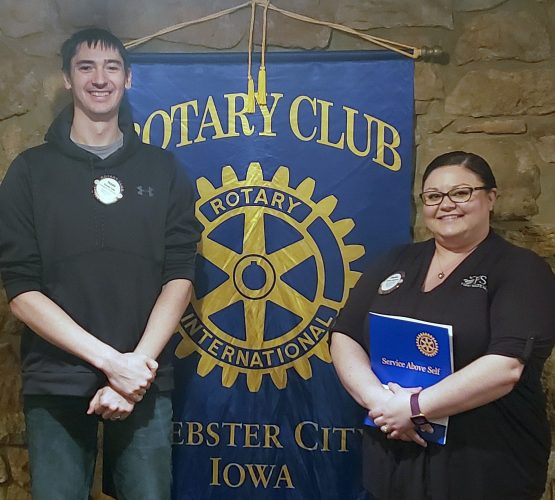 Travis Lala, Chairperson for Rotary After Hours, presents membership materials to Chelsea Quinteros. Quinteros is a lifelong resident of Webster City, and the newest member of the After Hours Charter. She resides in Webster City with her family, and is employed by First State Bank. The ...