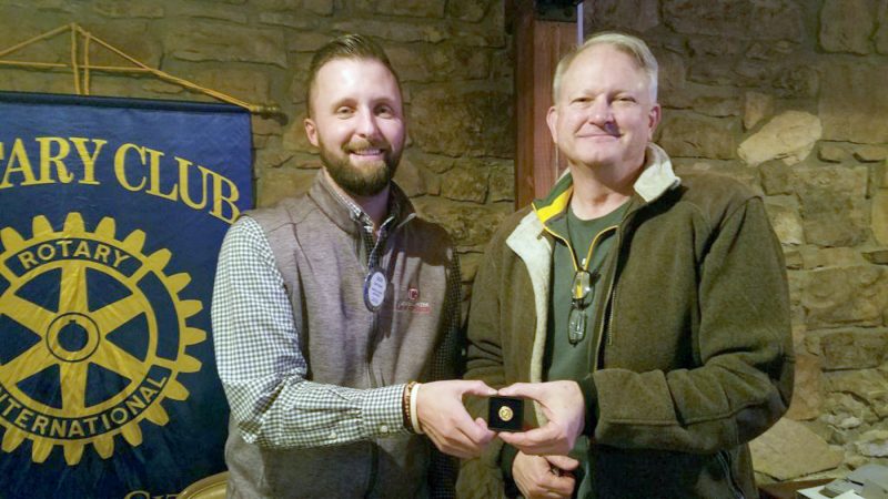 Rotary President Zach Chizek presents a pin to Mark Andrew to designate his second Paul Harris Fellow recognition. Paul Harris was the founder of Rotary. Donations made to the Rotary International Foundation go to projects that do good worldwide. Each $1,000 donation earns the contributor ...