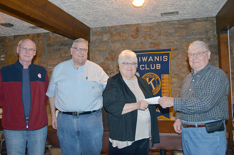 The program for the Noon Kiwanis club was on Weighted Blankets for special needs children/adults presented by Jennifer Buttolph. The club gave $250.00 to purchase materials for making blankets. Left to right is Glen Tjaden, Kiwanis President, John Buttolph, Jennifer Bottolph and Luverne Bierle.