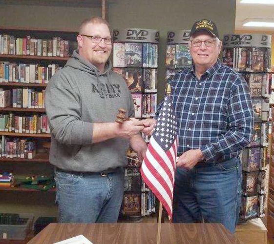Williams Post 633 Commander Wayne Wahlert, passed the gavel to Derrick Greenfield at their annual meeting. Wahlert, a Vietnam vet, had been Commander since 2012. Greenfield, an Afghanistan veteran, is the new commander of post 633.