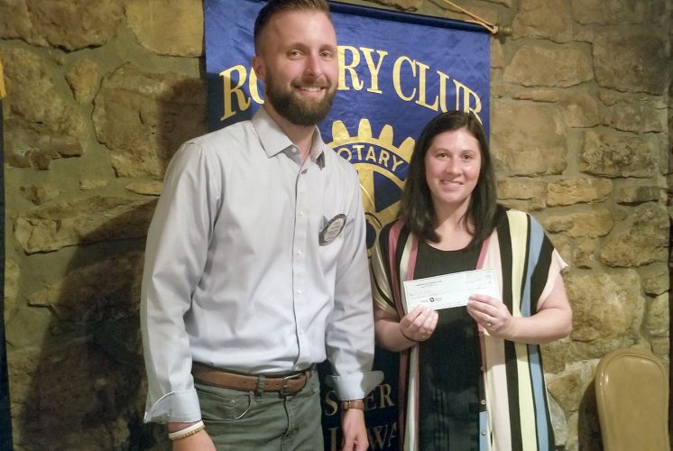 Webster City Rotary Club President Zach Chizek presented a check to Jamie Flygstad of Upper Des Moines Opportunity Monday during the club’s regular meeting.