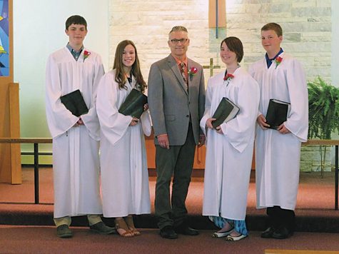 Four students were confirmed Sunday, May 6 at St. Paul Lutheran Church in Williams. Pictured are, from the left, Ethan Ratzke, Aspen Wibholm, the Rev. Jeff Tjelta, Oliviah Smith and Rylan Zorn.