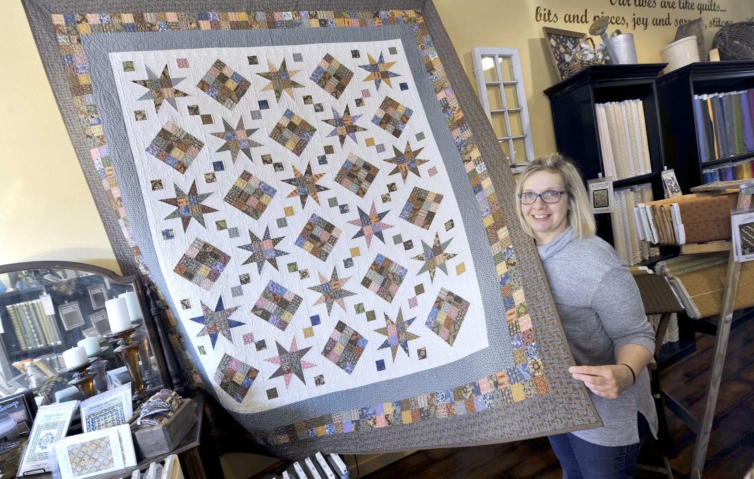 -Daily Freeman-Journal photo by Hans Madsen Jo Seltz, owner of Tillies Quilts in downtown Fort Dodge, shows off a finished quilt similar in design to one that will be created during a series of quilting sessions at the Fort Museum and Frontier Village. The design dates from the Civil War Era.