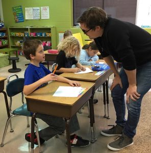 Co-creator Sam Davidson visited several Northeast Hamilton classrooms and worked with the 5th – 6th grade students who participated in the program last year in Laura Seiser’s reading classes. Davidson then introduced himself to the younger students.