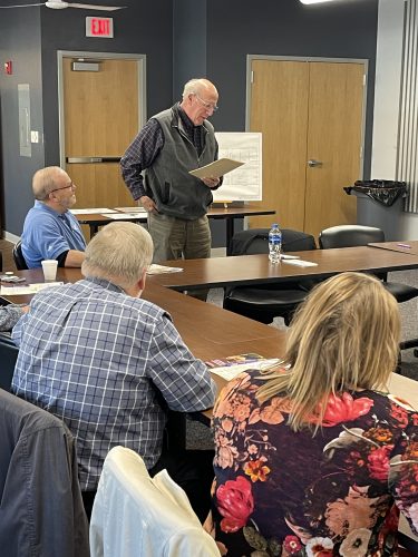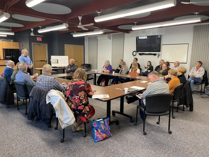 Richard Steffen shares information about the Jewell Historical Society at the Enhance Hamilton County Foundation’s Community Roundtable event held Tuesday at the Fuller Hall Recreation Center in Webster City.