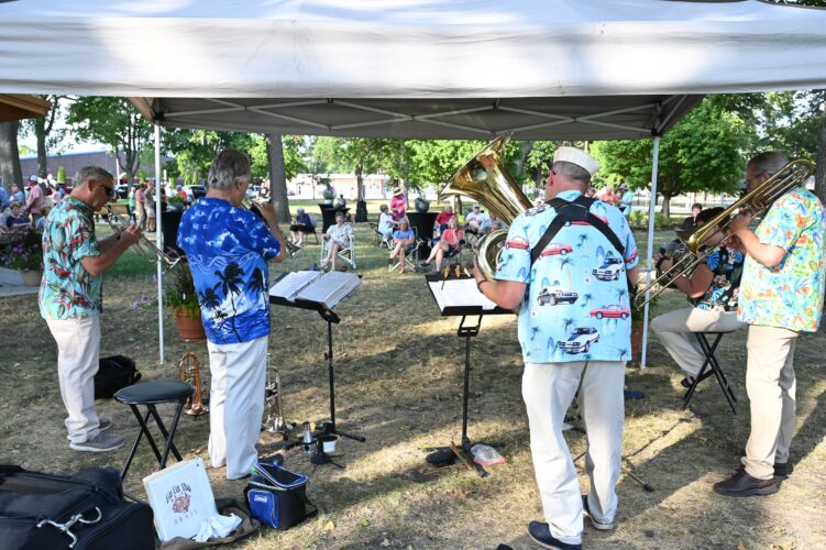 Jive for Five entertains the crowd of more than 100 people who gathered under the trees at West Twin Park for the event.