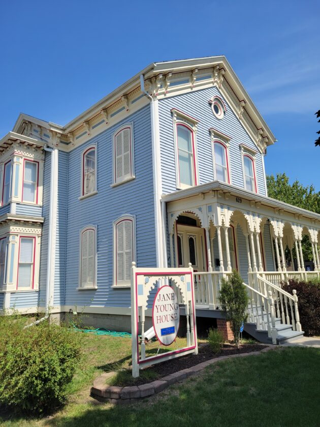 The Youngs moved into a simple dwelling in “Yankee Town” when they arrived in Webster City (population 400) in 1859. They lived there for 16 years before moving to Willson Avenue. Jane spent only 13 years in the beautiful home that now bears her name before health issues related to Bright’s Disease led to her admittance to Battle Creek Sanitarium in Michigan. She spent her last 15 years there, never to return to her beautiful home until her funeral in 1903.