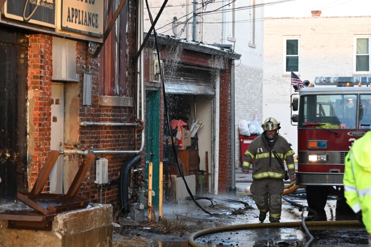 The fire creeped into the second floor of the building to the east of the burning structure. That building houses a resale retail store called Sandi’s Attic, 606 Second Street.