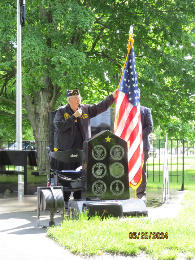 Derrick Greenfield gave the Commander Welcome and a prayer was offered by Wayne Wahlert as more than 80 people attended the Williams Memorial Day program at the Williams Park.