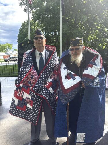 Craig Classen, left, and Rex Utech are wrapped in their Quilts of Valor.