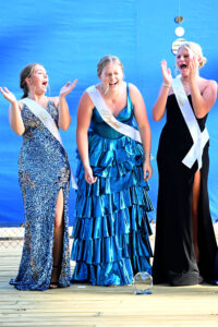 - Three queens renenact their crowning, from left, McKenna Miller, Emalie Perez, and Amanda Ostrem.