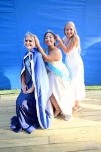 Three queens renenact their crowning, from left, McKenna Miller, Emalie Perez, and Amanda Ostrem.