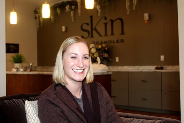 With five treatment rooms, Skin by Chandler, as the business is named, is a calm, cool oasis with a décor Gourley describes as “not farmhouse, not modern.” Antique furniture and prints of Europe elevate the experience of modern, advanced skin care.