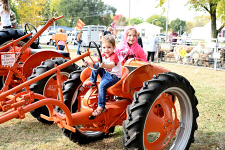 Malachi and Paislee Pagel, of Webster City, climb aboard the antique farm equipment during the 2024 Fall Festival at Wilson Brewer Park, Webster City. The event returns to the park on October 11. The petting zoo will be back and so will Musician Birdy Young.The event will run from 1 to 4 p.m. at the park, 220 Ohio Street, Webster City.