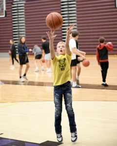 - Bryson Moen, of Webster City, shoots the basketball at Thursday night’s pep rally.