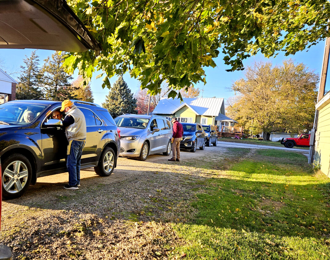 Carroll Ose, left and Art Jenison greet cars who are picking up meals during the annual Fall Festival at the St. Mary’s Catholic Church in Williams this past Sunday. The event has been a fundraiser for the church for over 25 years, and served over 500 meals during a two hour period.