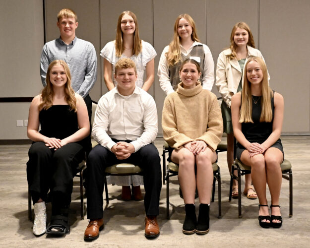 Eight students from South Hamilton High School were presented their honors by Principal Todd Coy during the banquet. Thye are, front row from left: Daytona Ferrie, Titus Herrick, Claire Hewitt and Abby Moline. Back row from left: Parker Stuck, Isabel Swenson, Kaylen Trask and Kayley Zanker.