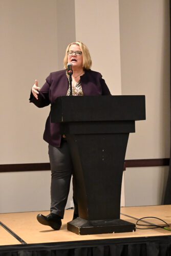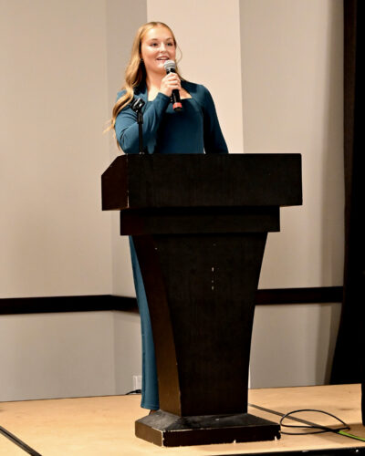 Guest speaker Dr. Celina Peerman, addresses this year’s honored guests from South Hamilton and Webster City high schools during the Rotary Youth Leadership Banquet. A total of 24 students were recognized Sunday evening.