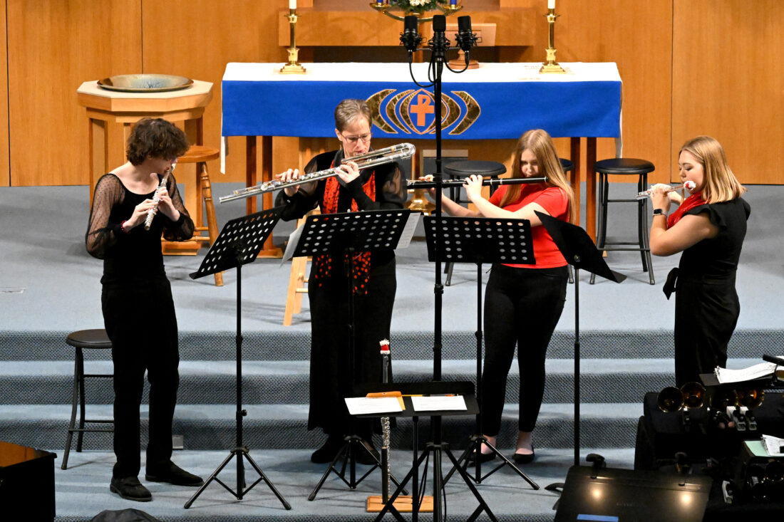 The public is invited to enjoy the sounds of the season this weekend as the Webster City Community Chorus, Webster City Community Handbell Choir and Webster City Flute Ensemble, present “Before the Manger” at Trinity Lutheran Church, 1229 Kathy Lane, Webster City. The first concert is Saturday, December 6 at 7 p.m., which caps off the Christmas in the City events. A second concert will be on Sunday, December 7, at 2 p.m. Pictured is the Flute Ensemble performing in 2024.