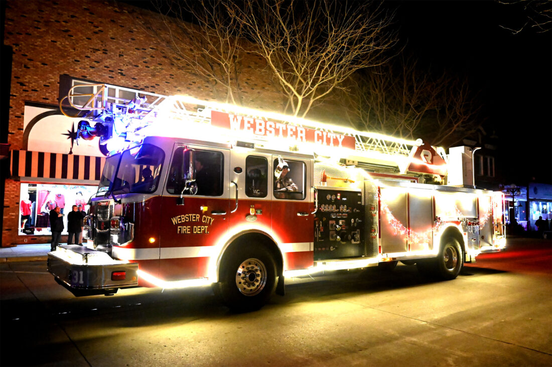 The Webster City Fire Department illuminated the streets in 2024. Parade entries are still accepted and those planning to participate need to contact the Webster City Area Chamber of Commerce. In the event of bad weather, the event will be postponed.