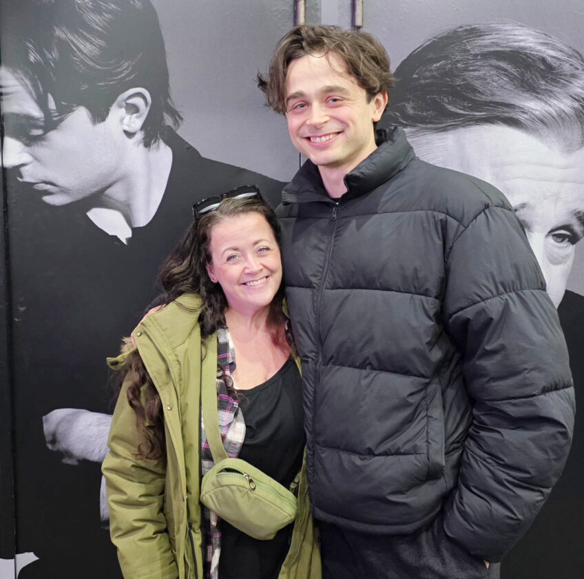 Shelly Bottorff of Fort Dodge and aunt to Ben Ahlers, gets a photo with her nephew while attending his Broadway debut playing Happy Loman in “Death of a Salesman.”