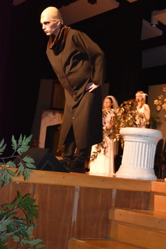 Jack Barner as Festus Addams, stares intently at the audience during the Webster City High School production of “The Addams Family.’ The show opens tonight at the Prem Sahai auditorium at the Webster City High School located at 1001 Lynx Ave. The cost of the tickets are $8 for adults, $5 for students.