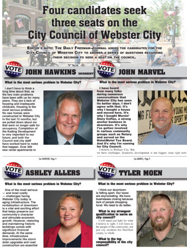 Editor's note: The Daily Freeman-Journal asked the candidates for the City Council of Webster City to answer a series of questions regarding their decision to seek a seat on the council.