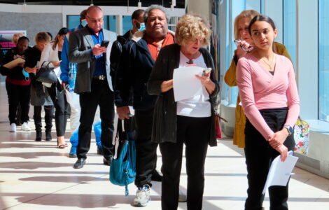 WASHINGTON (AP) — U.S. job openings barely budged in October, coming in at 7.7 million with ongoing uncertainty over the direction of the American economy.