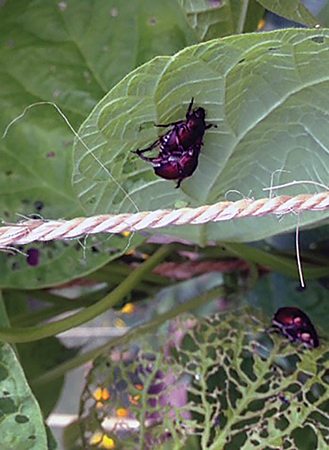 Handpicking Japanese beetles or knocking them into a bucket of soapy water may provide adequate protection when beetle numbers are low. The presence of beetles will bring more of these uninvited guests to your garden as they emit a pheromone attractant, so immediately remove any beetles when first noticed.