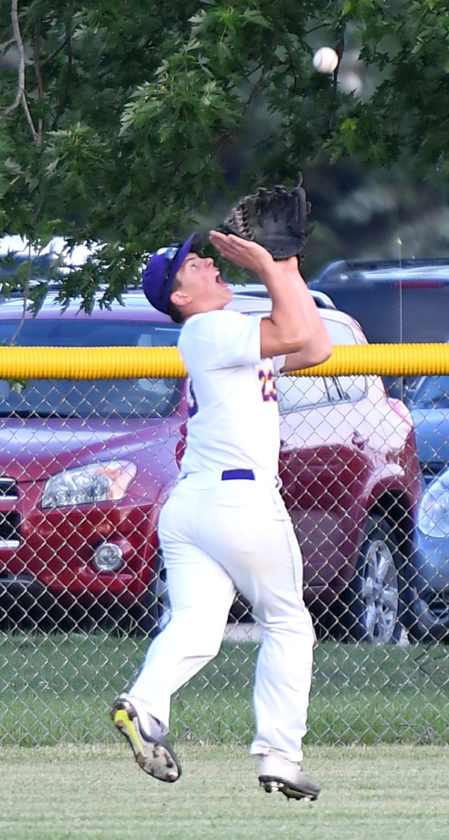 - WCHS center fielder Caleb Olson races back to make a catch on the run during the first inning against Algona on Friday. DFJ photo/Troy Banning