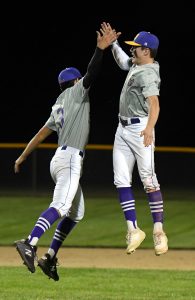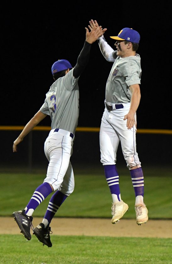 - Webster City’s Tyler Olson (3) and Ty McKinney celebrate the Lynx latest comeback, a 6-3 NCC win over Clear Lake on Wednesday in Clear Lake. WCHS trailed 3-0 entering the sixth inning. DFJ photo/Troy Banning
