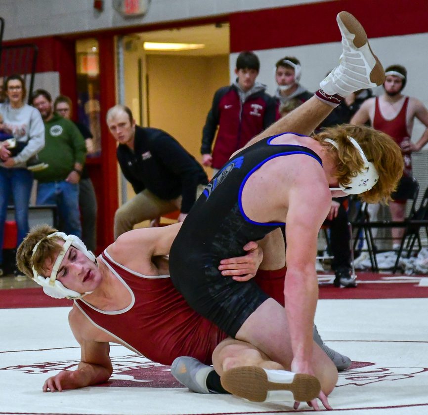 Ninth-ranked (Class 1A) 182-pounder Brent Greenfield suffered his first loss of the season against West Marshall’s Austin Pfantz — and it was an upset — but he rebounded to win his bout against sixth-ranked (1A) and returning state place winner Brody Sampson of Collins-Maxwell in a rematch of a first-round tussle at the 2021 state tournament.