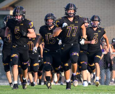 Members of the 2021 Webster City varsity football team run onto the field prior to the season opener against Humboldt last fall. Webster City Youth Football is scheduled to kickoff in September for the next generation of Lynx players. DFJ file photo/Troy Banning