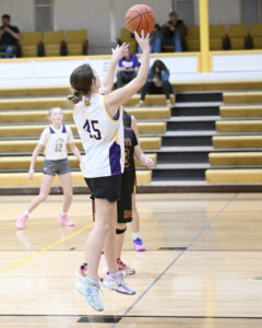 Webster City seventh-grade girls basketball players (left to right) Bailey Schultz, Kinley Hutchinson and Stella Cheyne go to the hoop during a recent home game against Iowa Falls-Alden inside the Jefferson gym.