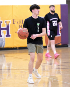 Cole Miller of Webster City (first photo) puts up a shot last Wednesday during a Fuller Hall men’s rec league basketball game. Damion Elliott (second photo) dribbles the ball up the court. Lincoln Van Sickel (third photo) knocks down a three-point basket.