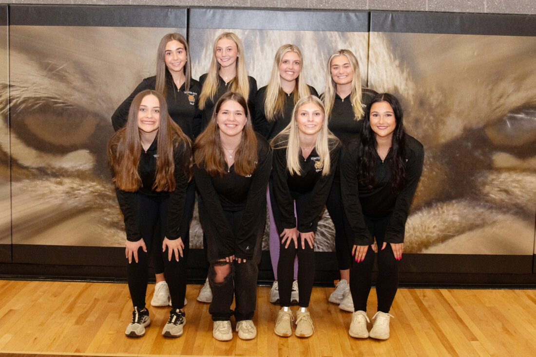 RETURNING LETTERWINNERS FOR THE WEBSTER CITY GIRLS GOLF SQUAD are, front row (left to right): Haydin Sealine, Abby Heckert, Mylie Keller and Ellie Peterson. Back: Hayden McCoy, Carli Jessen, Alleyna Dawson and Kenley Koop. (Photo by Patrick Coons)