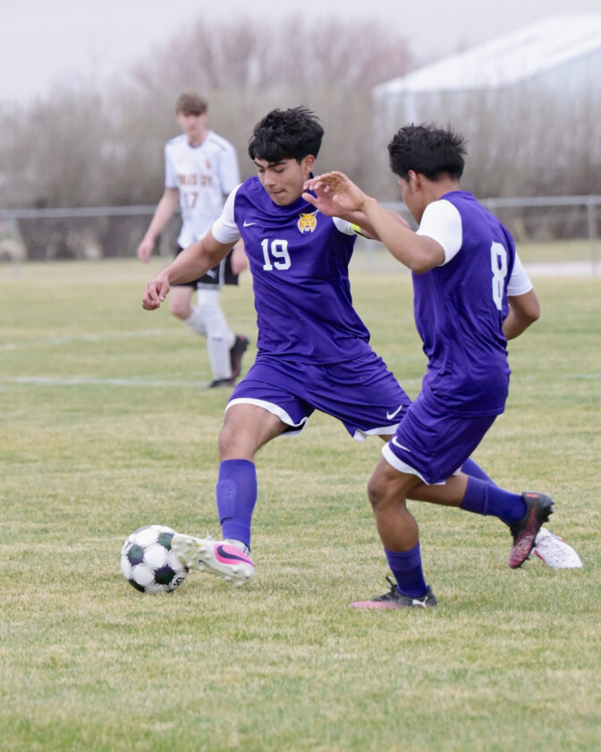 WEBSTER CITY’S ABISAI RAMIREZ-CARMONA chases down the ball next to teammate Domingo Morales (8) against Charles City on Monday at Lynx Field. (DFJ photo by David Borer)