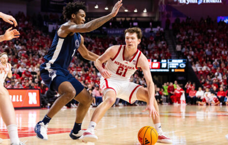 LINCOLN, Neb. (AP) — Pryce Sandfort scored 20 of his career-high 33 points in the first half and finished with eight 3-pointers, leading ninth-ranked Nebraska in an 87-64 rout of Penn State on Saturday.