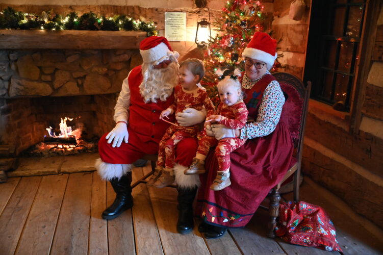 Santa and Mrs. Claus hosted children in the Jamison Cabin at Wilson Brewer Historic Park. Here they hold Cullin and Ellowin Hammit, of Webster City. Surprise: These are Santa and Mrs. Claus’s real grandchildren.